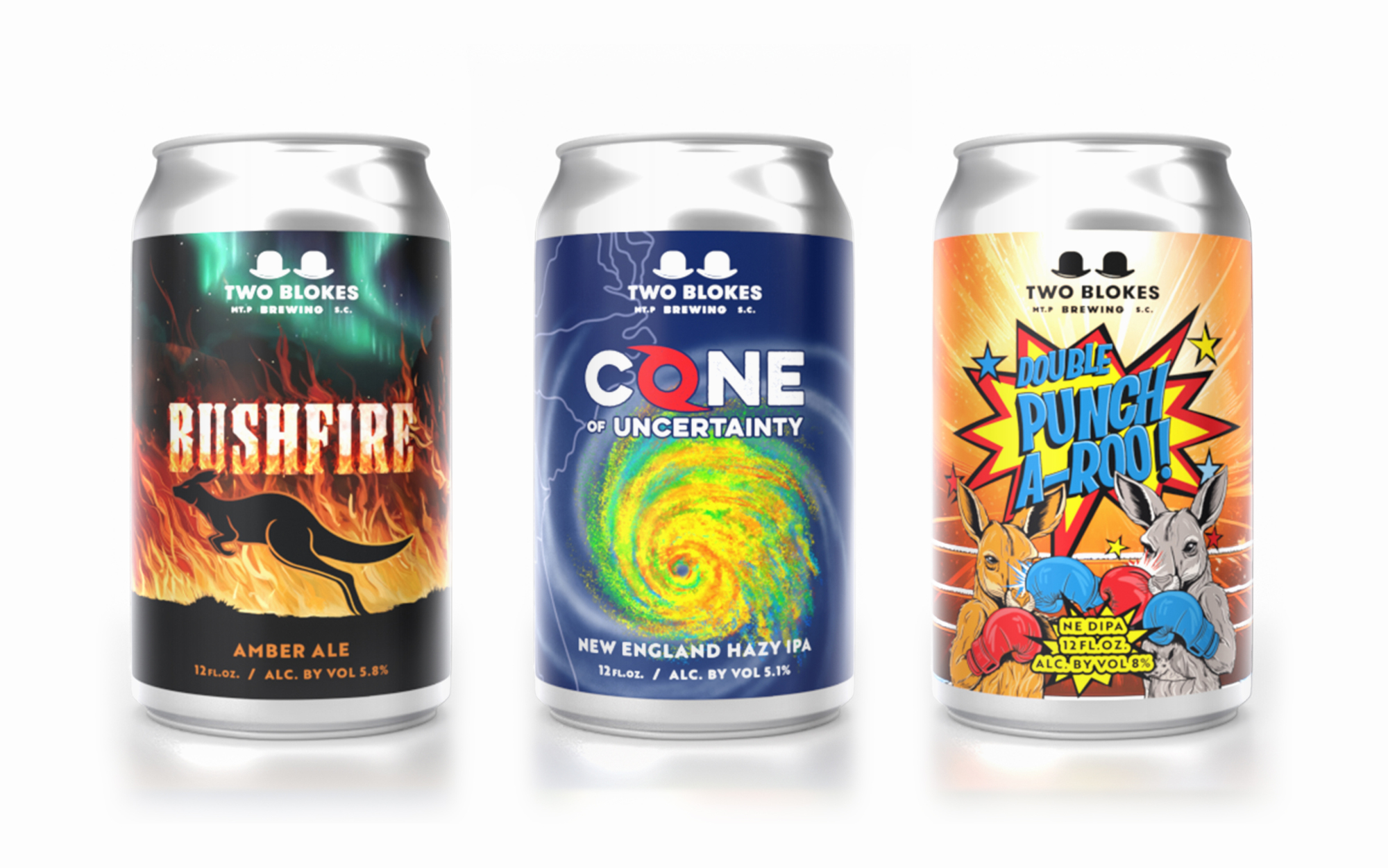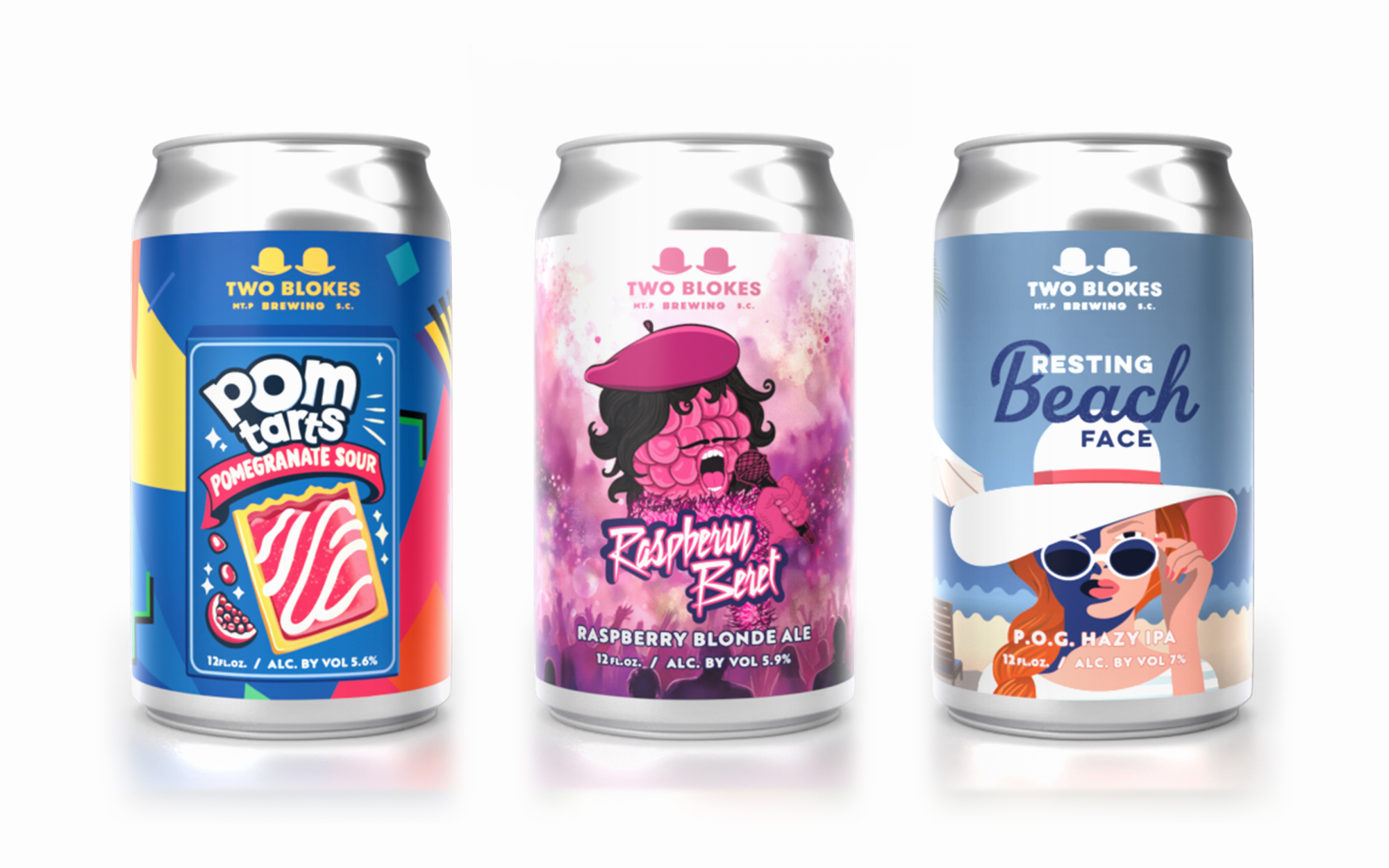 I’ve known the Two Blokes crew since they opened in 2016, and I’m grateful they’ve trusted me to design their labels over the past few years. With such a fun, lively atmosphere at the brewery, my goal has been to reflect that energy in the labels – keeping things fresh for loyal customers while attracting new ones and strengthening overall brand recognition.